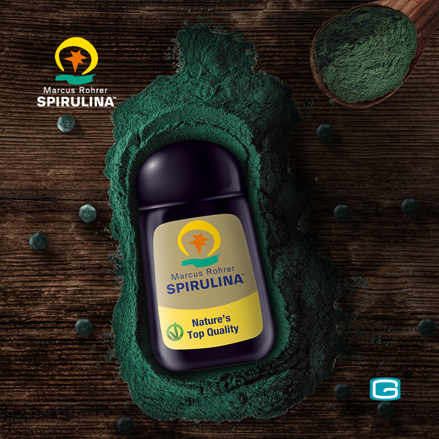 Ingredienti: Spirulina (Spirulina platensis (Gomont) Geitler) tallo polvere; Antiagglomerante: Biossido di Silicio, Magnesio Stearato; Inulina. Non contiene conservanti né coloranti.